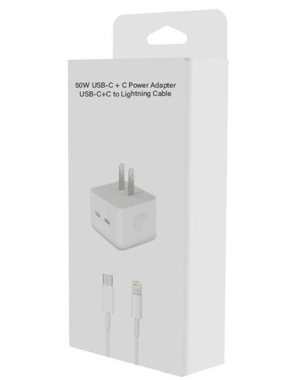 50w Dual Usb-c +c Power Adapter With Type-c To Lightning Cable