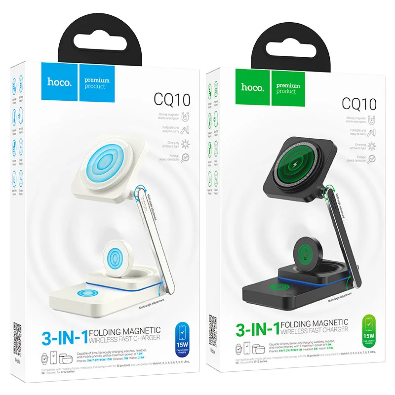 Hoco 3 In 1 Folding Magnetic Wireless Fast Charger Cq10 (white)