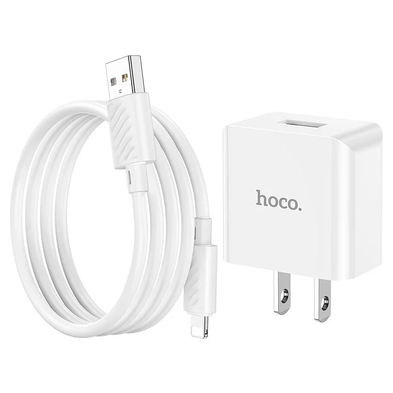 - Effortlessly charge your iPhone with the HOCO C106 Leisure Wall Charger and Lightning Cable set.